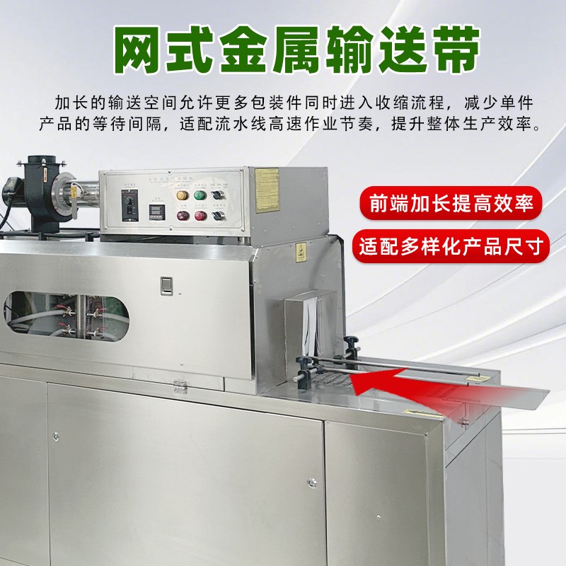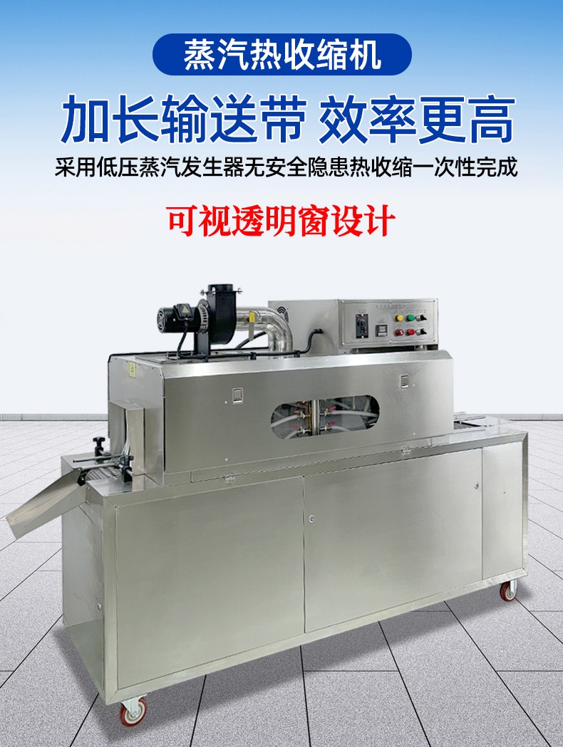 1. 減少設(shè)備占用空間,適配多場景布局需求傳統(tǒng)蒸汽收縮包裝方案中,獨立蒸汽發(fā)生器體積較大,需與收縮機分開放置,還需預留管道連接的空間,整體占地面積大,對廠房面積較小的中小企業(yè)或生產(chǎn)線布局緊湊的場景極不友好。而蒸汽收縮一體機通過結(jié)構(gòu)優(yōu)化,將蒸汽發(fā)生模塊內(nèi)嵌于設(shè)備主機框架內(nèi),采用垂直分層或側(cè)置內(nèi)嵌的緊湊設(shè)計,整體占地面積相比 “分體式設(shè)備組合” 減少 30%-50%。這種集成化設(shè)計不僅能輕松適配車間狹窄區(qū)域、流水線嵌入式工位,還可靈活移動至臨時包裝作業(yè)區(qū),無論是固定生產(chǎn)線還是臨時加工點,都能高效利用有限空間。